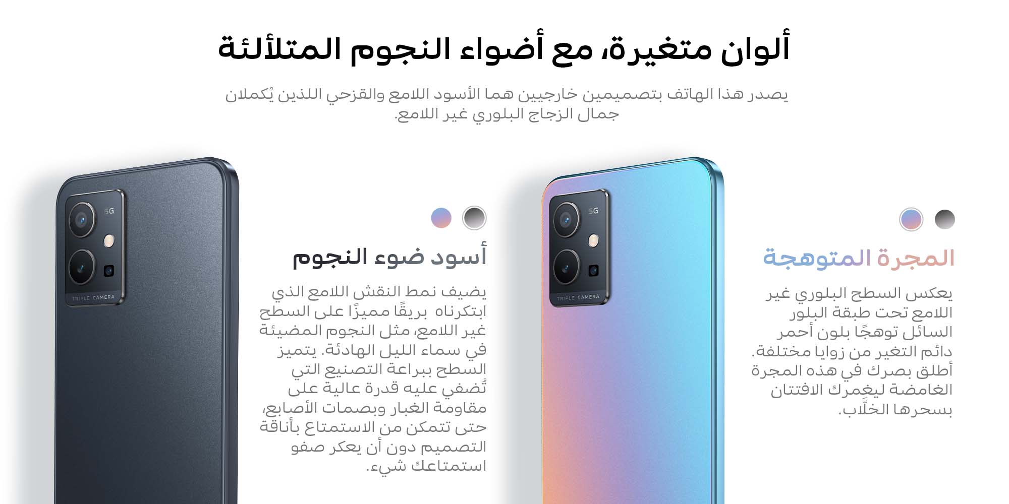 يتميز Y55 5G بشاشة 6.58 بوصة FHD + Incell التي توفر تجربة غامرة | دقة 2408 × 1080 FHD + | يدعم تشبع اللون العالي ، ويحميهم من الضوء الأزرق مع وضع حماية العين.